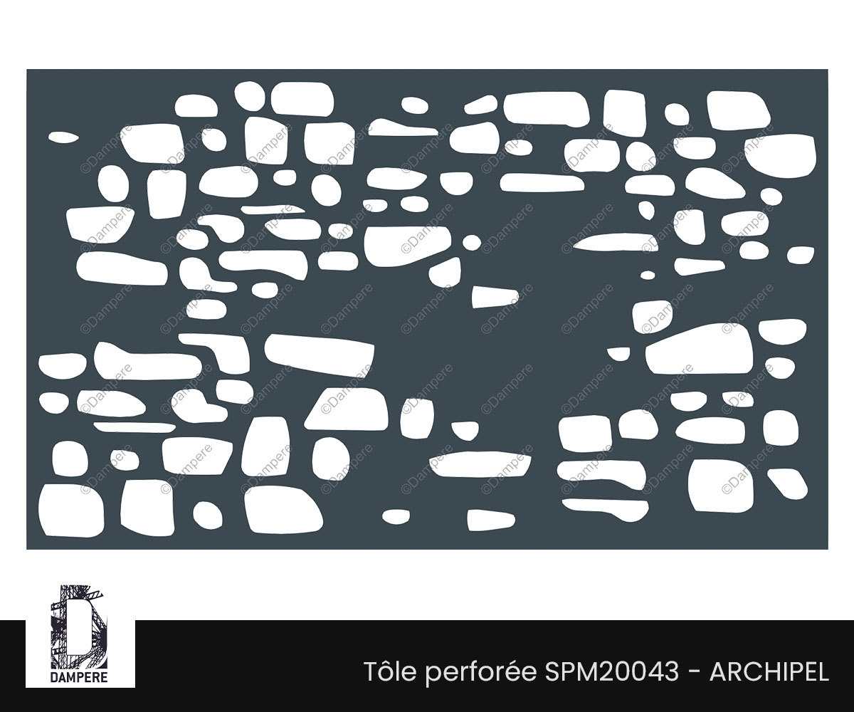 La tôle découpe laser pour clôture Archipel DAMPERE montre un parement minéral incomplet, structuré de larges ouvertures en quinconce, regroupées de manière discontinue pour réduire la vision au travers du panneau métallique sans pour autant obturer la vue. Archipel s'utilise régulièrement en garde corps, clôtures et claustras de jardin. Le jeu des perforations et des pleins crée un équilibre entre légèreté et robustesse, offrant une transparence subtile tout en garantissant une protection visuelle. Archipel DAMPERE s'inspire de la nature tout en s'ancrant dans une esthétique contemporaine, faisant de ce panneau un élément décoratif à la fois fonctionnel et artistique. Ce motif minéral abstrait est idéal pour des applications telles que les garde-corps, les clôtures semi occultant ou les façades, où il apporte à la fois une touche de modernité et un clin d'œil à la nature brute, évoquant des paysages rocheux ou des îles éparses.Le conseil de l'équipe