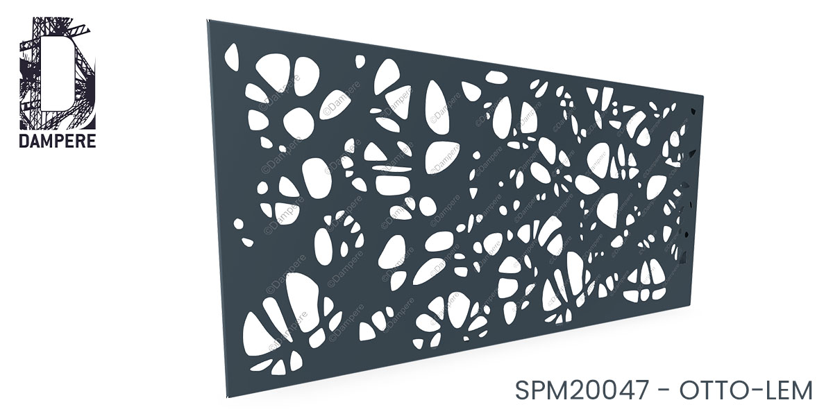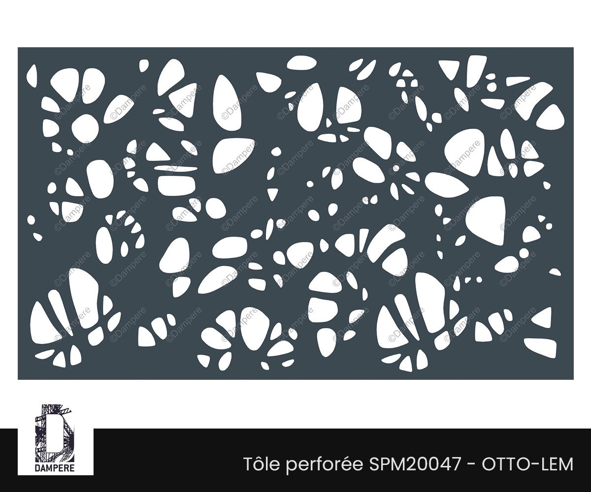 La tôle décorative Otto Lem incarne une fusion poétique entre le monde minéral et végétal, en représentant des galets arrondis regroupés en grappes pour former un motif évoquant un feuillage minéral. Ce jeu de formes, à la fois organiques et abstraites, crée une esthétique unique, où la nature semble être sculptée dans le métal. Le contraste subtil entre les petites et grandes ouvertures ajoute de la profondeur et du dynamisme au design, permettant à la lumière de se faufiler à travers les perforations et de projeter des ombres délicates, rappelant des feuilles dansantes ou des cailloux polis par l'eau. Ce motif polyvalent s’adapte aussi bien aux environnements extérieurs qu’intérieurs, offrant une solution décorative idéale pour des projets architecturaux recherchant à instaurer une atmosphère apaisante et naturelle, tout en conservant une touche de modernité. Otto Lem, à mi-chemin entre le végétal et le minéral, s'intègre harmonieusement dans des clôtures, des façades ou des espaces de séparation, créant un équilibre parfait entre le design artistique et fonctionnel.Usages