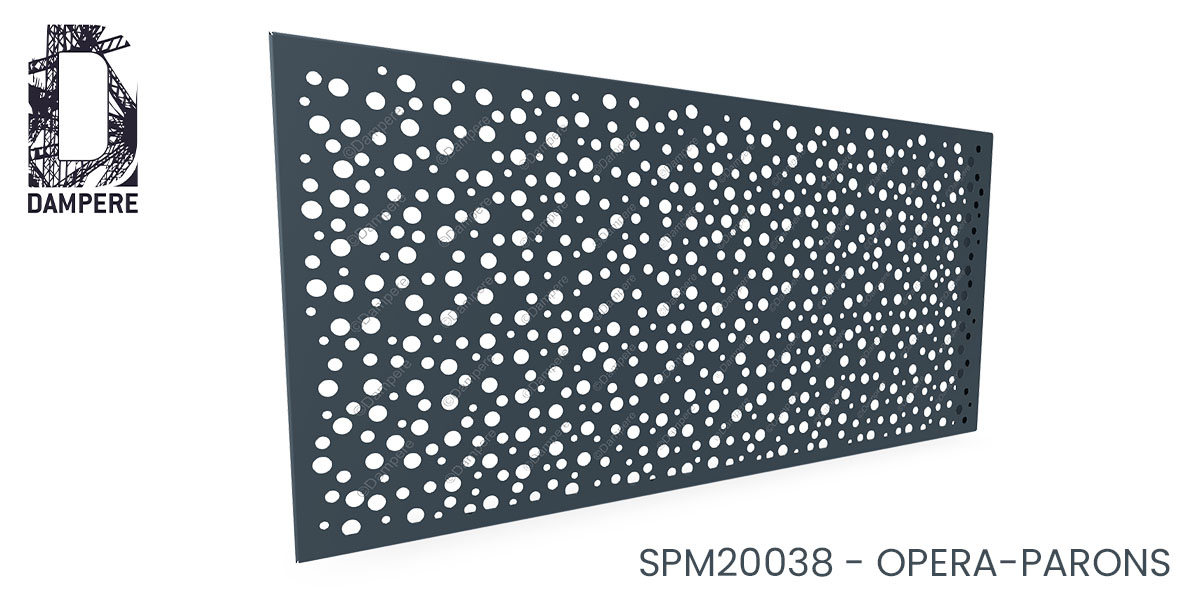 La tôle perforée Opéra Parons DAMPERE évoque un ballet aérien de bulles de savon flottant librement. Chaque trou, de diamètre variable, semble se former spontanément, simulant le mouvement fluide et aléatoire des bulles en suspension, se déplaçant délicatement d’un point à un autre. Leur répartition irrégulière, mais harmonieuse, rappelle une danse subtile où les bulles s’entrecroisent et se dispersent dans une séquence apaisante. Cette composition poétique, presque vivante, transforme la tôle perforée aléatoire en un objet de contemplation, créant une sensation d’espace ouvert et de légèreté. Elle est idéale pour les applications architecturales, où la transparence douce qu’elle offre permet de jouer avec la lumière et les ombres, tout en ajoutant une touche de sérénité au design des bâtiments.Usages