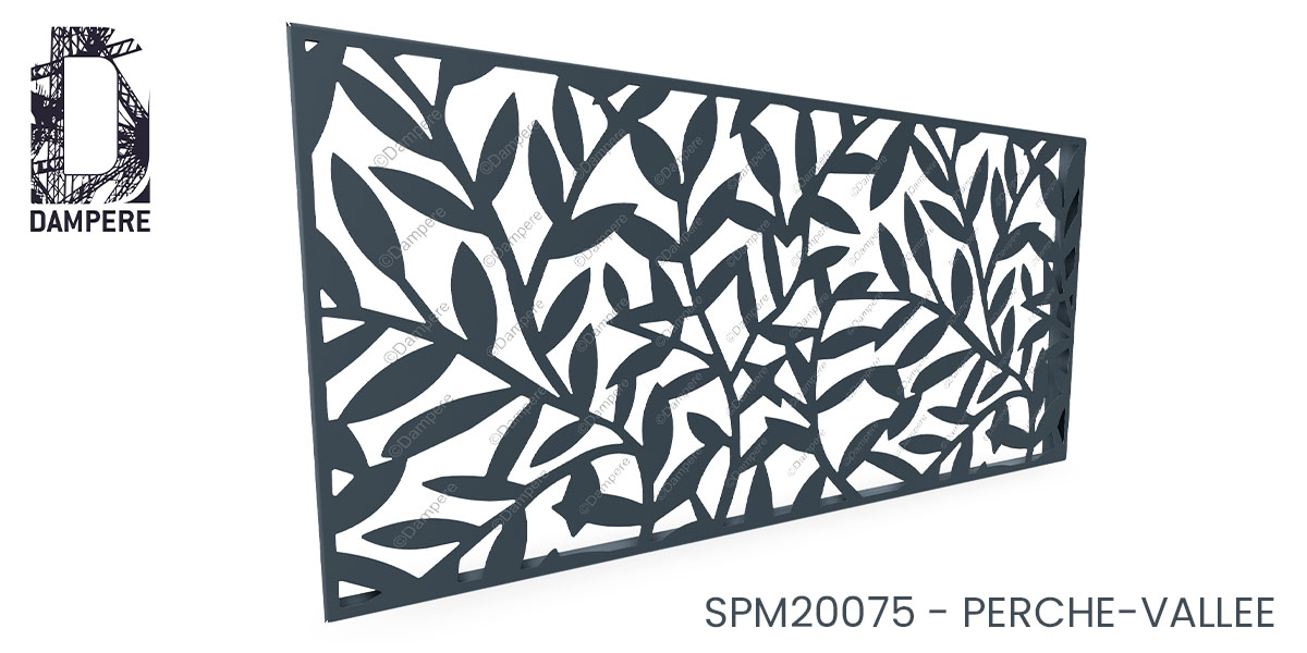 Le motif décoratif Perche Vallée DAMPERE, avec ses formes de feuillages entrelacés et son design végétal fluide, est parfaitement adapté pour des jardins publics, des parcs urbains, ainsi que pour l’habillage de locaux techniques ou de locaux poubelles en pleine ville. Dans un jardin public ou un parc urbain, l’usage de cette tôle en découpe laser végétal permet de créer une clôture métallique qui s’intègre harmonieusement dans l’environnement naturel, tout en offrant une protection visuelle et une sécurisation discrète des espaces. Son motif végétal renforce l’idée d’une nature stylisée et apaisante, qui contribue à rendre ces espaces publics plus accueillants et esthétiques. Pour l’habillage de locaux techniques ou de locaux poubelles, souvent présents dans des environnements urbains denses, le design moucharabieh Perche Vallée offre une solution à la fois pratique et esthétique. Il permet de dissimuler ces installations tout en préservant un aspect contemporain et agréable à l’œil, transformant ces structures utilitaires en éléments décoratifs intégrés à l’aménagement urbain. Le jeu de transparence et d’occultation de cette tôle perforée assure une ventilation tout en garantissant que les installations restent visuellement attrayantes. Son utilisation dans ces espaces contribue à humaniser l'architecture urbaine et à introduire une dimension naturelle dans des environnements souvent marqués par la rigueur et la densité. Que ce soit pour des parcs, des locaux ou des projets résidentiels, le motif Perche Vallée apporte en quelques panneaux une fraîcheur végétale pour changer la dynamique du projet.Effet produit