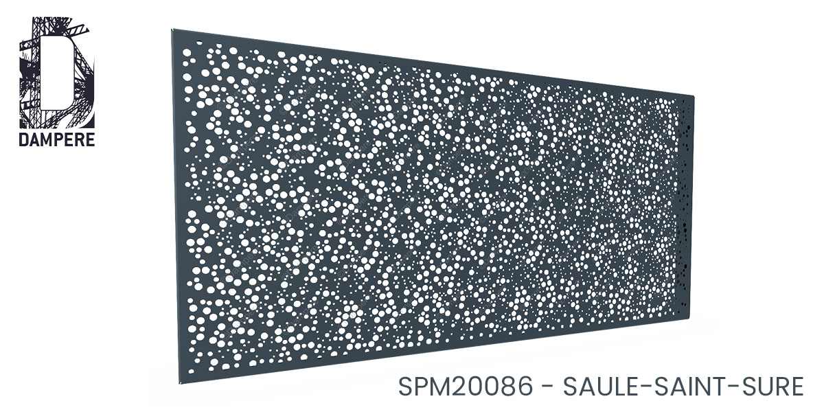 La clôture occultante Saule Saint Sure DAMPERE, avec une hauteur de 2 mètres, est un choix remarquable pour créer un écran visuel à la fois esthétique et fonctionnel dans des environnements résidentiels ou urbains. Le motif de la tôle perforée décorative, composé de ronds de diamètres variés, évoque le mouvement délicat de pollen et de petits débris végétaux tourbillonnant dans le vent. Cette perforation aléatoire, fluide et organique, capture la beauté subtile de la nature tout en assurant une occultation efficace, ce qui en fait un excellent choix pour des projets nécessitant à la fois intimité et esthétisme. Lorsque cette tôle perforée est utilisée en clôture métallique de grande hauteur, elle crée un effet visuel particulièrement captivant. De près, les détails des perforations révèlent une richesse graphique, où chaque cercle semble s'entrelacer avec les autres, produisant un effet de mouvement et de légèreté. Ce jeu de formes aléatoires et irrégulières fait penser à une danse silencieuse de particules flottantes, apportant une dimension poétique à la structure. De loin, la clôture décorative devient un voile de métal abstrait, offrant une certaine transparence tout en bloquant la vue directe, créant ainsi un équilibre subtil entre intimité et ouverture. En tant que clôture occultante, le remplissage Saule Saint Sure assure une occultation visuelle significative, idéale pour protéger des zones sensibles telles que des jardins privés, des terrasses ou encore des espaces partagés dans des résidences collectives. La tôle perforée aléatoire permet de dissimuler efficacement les espaces tout en laissant passer la lumière, ce qui évite l'effet de cloisonnement total. Les perforations de tailles variées ajoutent une dimension artistique au projet en projetant des ombres mouvantes et complexes sur les surfaces environnantes, créant un jeu de lumière qui évolue au fil de la journée.Usages