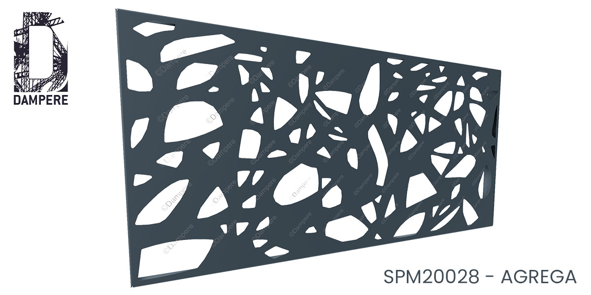 La tôle décorative Agrega DAMPERE est un thème esthétique chargé d'un caractère mystérieux entre le végétal et le minéral, qui varie selon la perception de chacun. En fonction de la taille du panneau métallique, certains mouvements vont dominer alors que d'autres s'estompent. Agrega s'utilise aussi bien en décoration d'intérieure que pour l'aménagement urbain.Le conseil de l'équipe